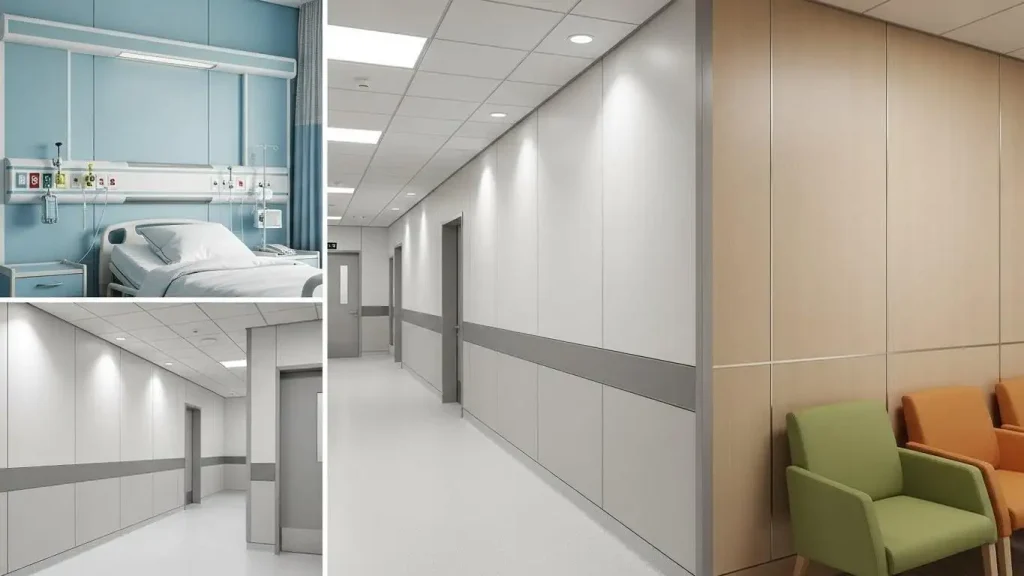 Panels are water-resistant and termite-resistant, and they are simple to clean. This makes them suitable for bathrooms, kitchens, clinics, and corridors where moisture and stains are an everyday reality.