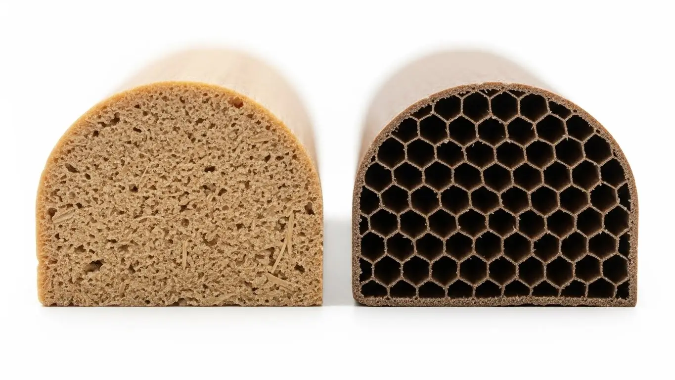 WPC wall panels are a hybrid material made by blending wood powder (bamboo or wood fiber) with thermoplastics, creating a dense, structural board that mimics timber. In contrast, PVC panels are synthetic polymers, often extruded with a hollow honeycomb structure to reduce weight while maintaining rigidity for vertical applications.